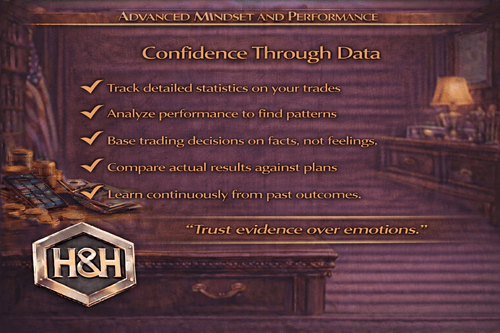 An advanced mindset course that shows traders how data, journaling, and performance metrics build grounded confidence based on evidence rather than emotion.