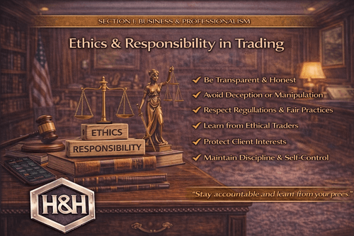 A business-focused trading course that covers ethical behaviour, personal responsibility, and professional conduct required for sustainable and credible trading practices.